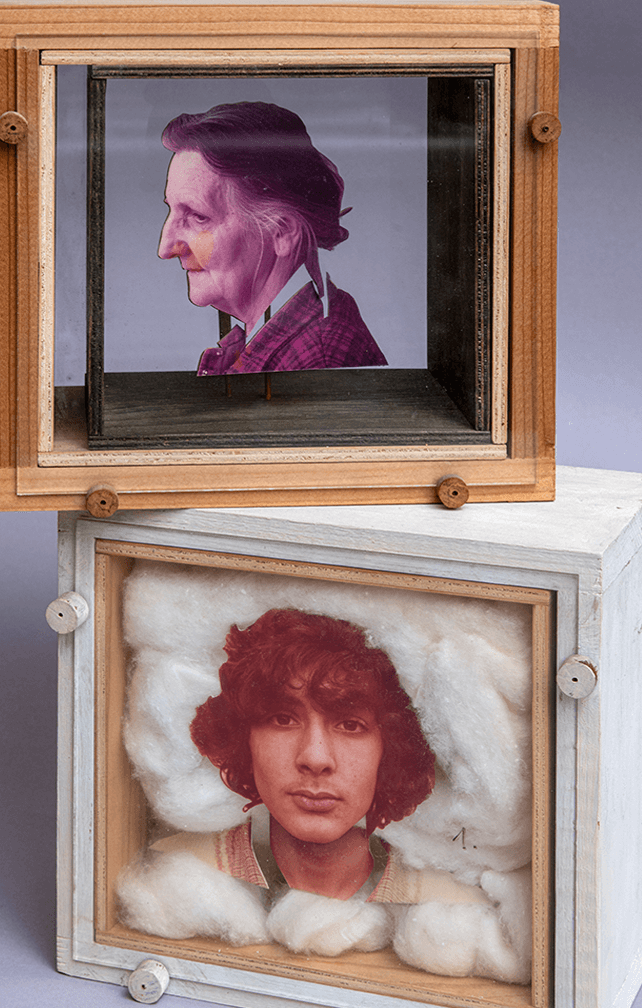 Volevo fare un museo di paese di cui presento alcuni reperti. Doveva stare in scatole di legno con vetro. Non ho potuto realizzarlo per mancanza di spazi (comunali). Poi ho finito di trasformare foto di paesani in disegnini messi a ricordo in cornicette. Ognuno con carattere o slogan.