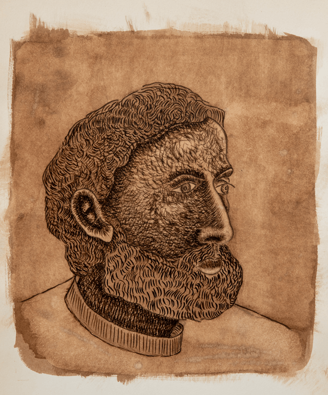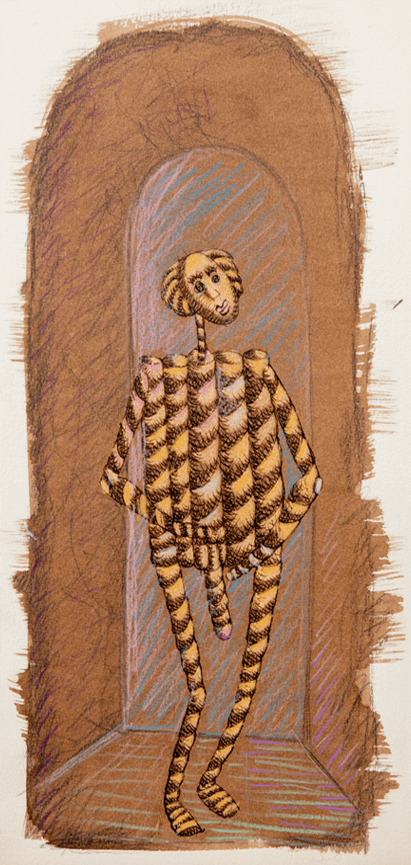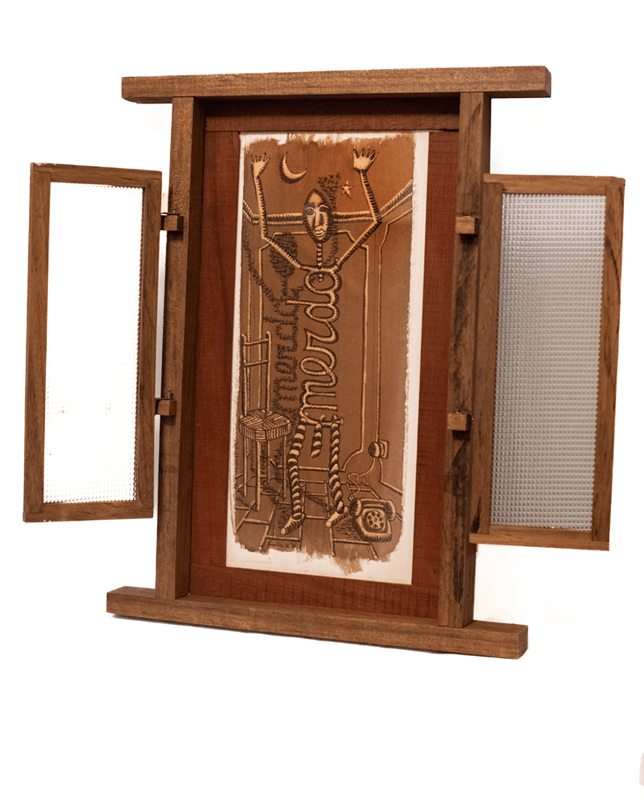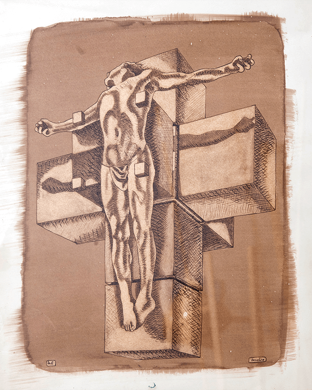 Questa tecnica che “toglie” dalla carta ha un sapore antico e tale doveva apparire la figurazione: un attimo di staticità come uno scatto fotografico.