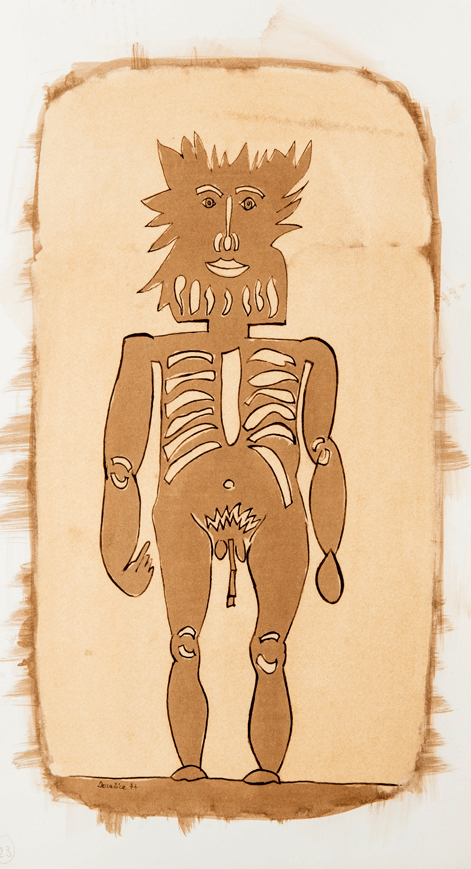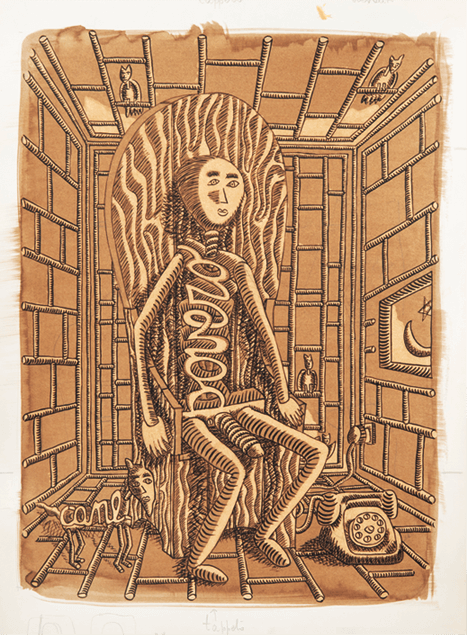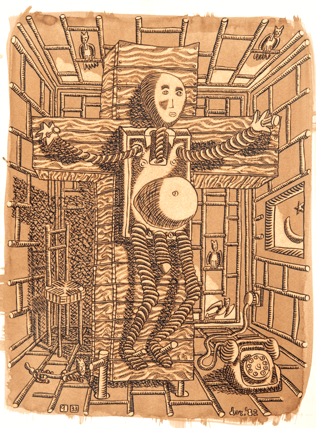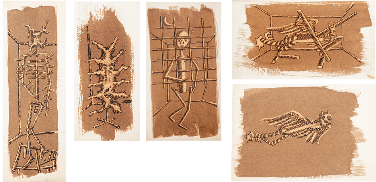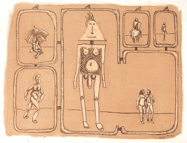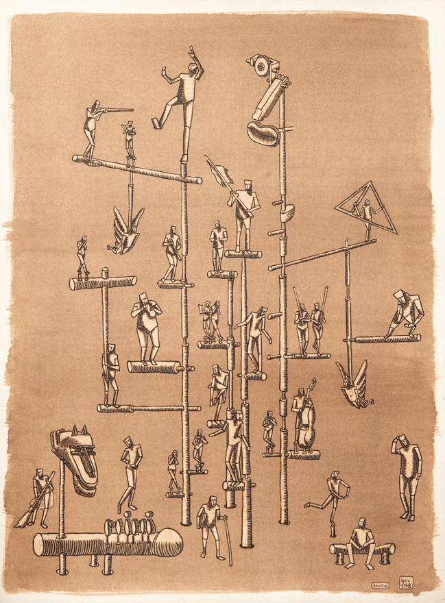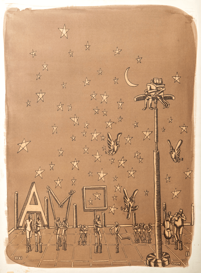 Ma a parte parte alcuni ritratti austeri oltre non si va, è meglio passare ai personaggi fantastici. Il povero cane va sempre con un povero astro nel cielo. I bambini, in strisce, si equilibrano, scherzano, e poi angeli volatili vari portano notizie.