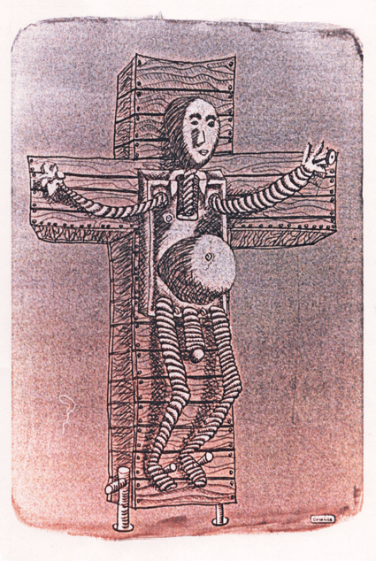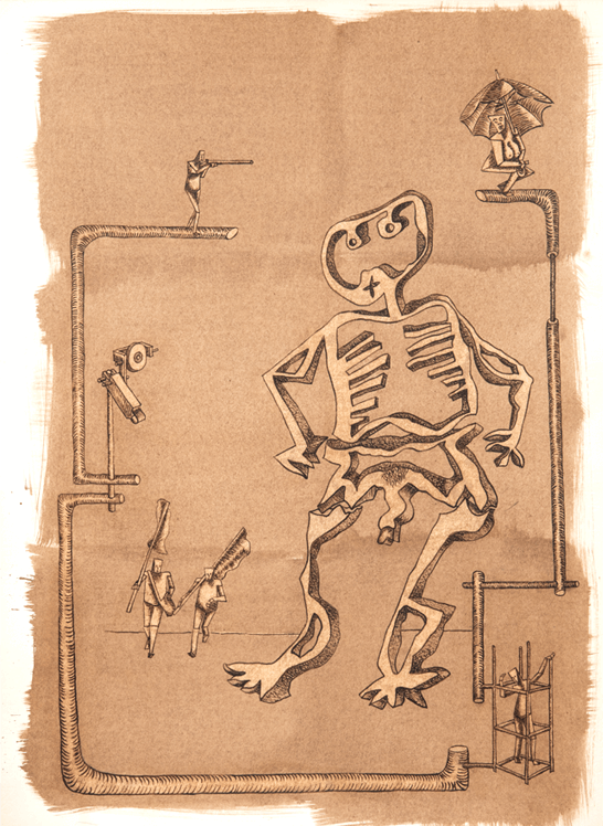 Passando agli umani, c’è pure il povero, l’operaio, chi protesta: scheletroni ma tutti personaggi, senza futuro – così la vita.