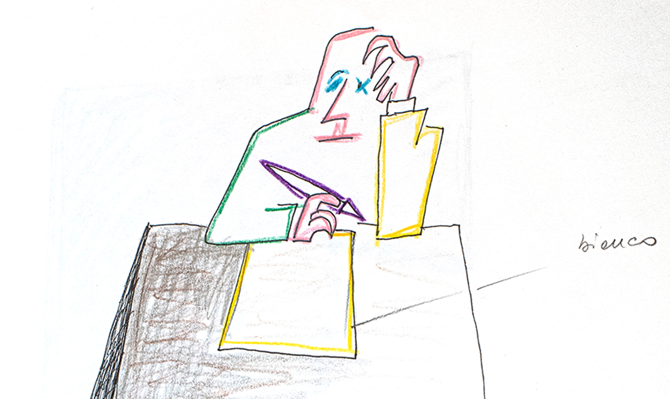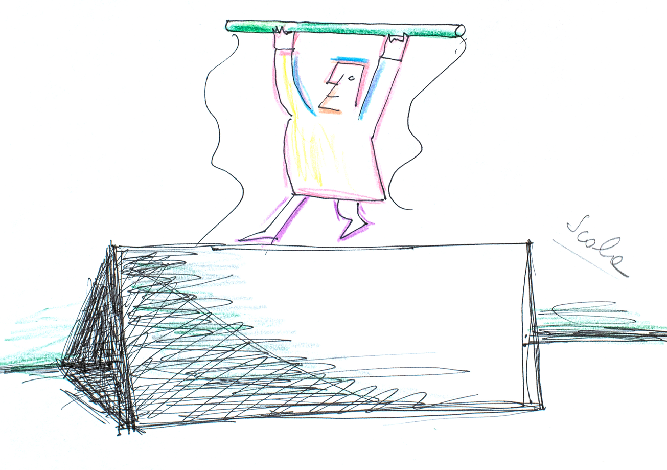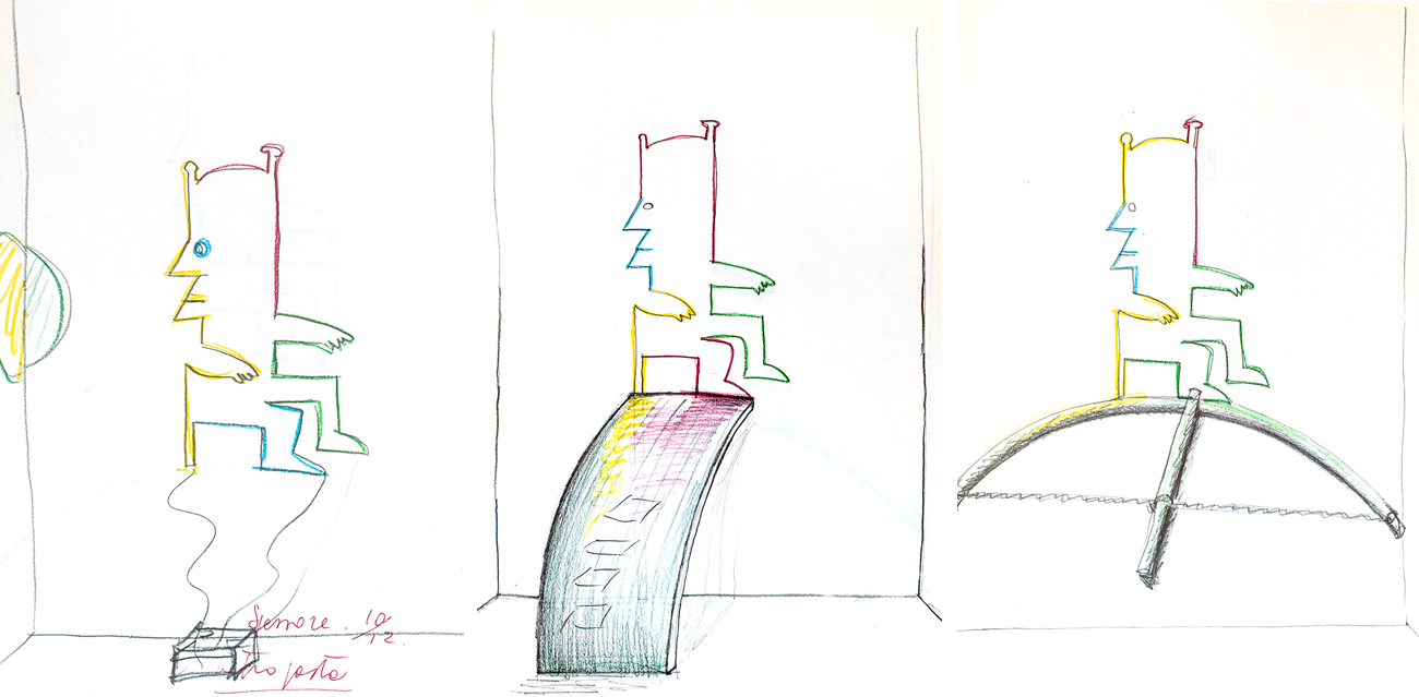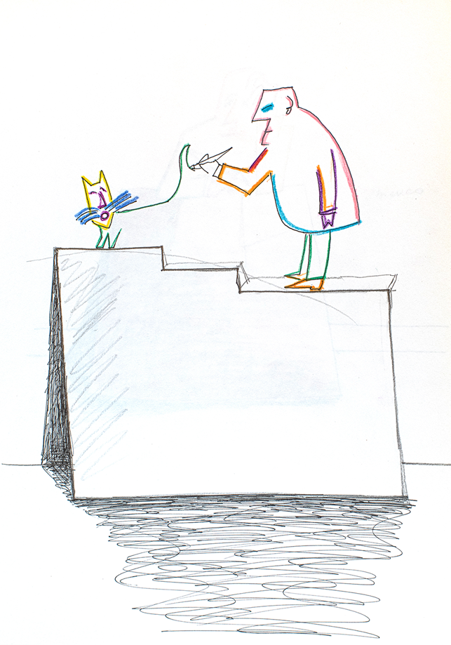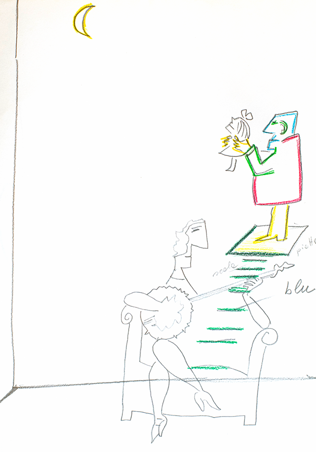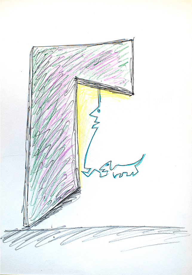 Grandi, issimi, i disegni di Steinberg. Guardandoli mi sono appassionato e li vedo già muoversi qua e là a colori sui muri. C’era sempre un modo, un solido, uno sbalzo per accedervi – Un modo di vivere in mezzo a loro e loro in mezzo a noi. Provate per credere –