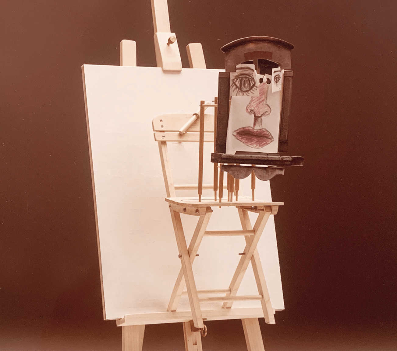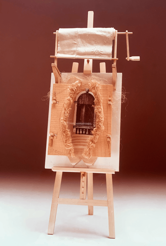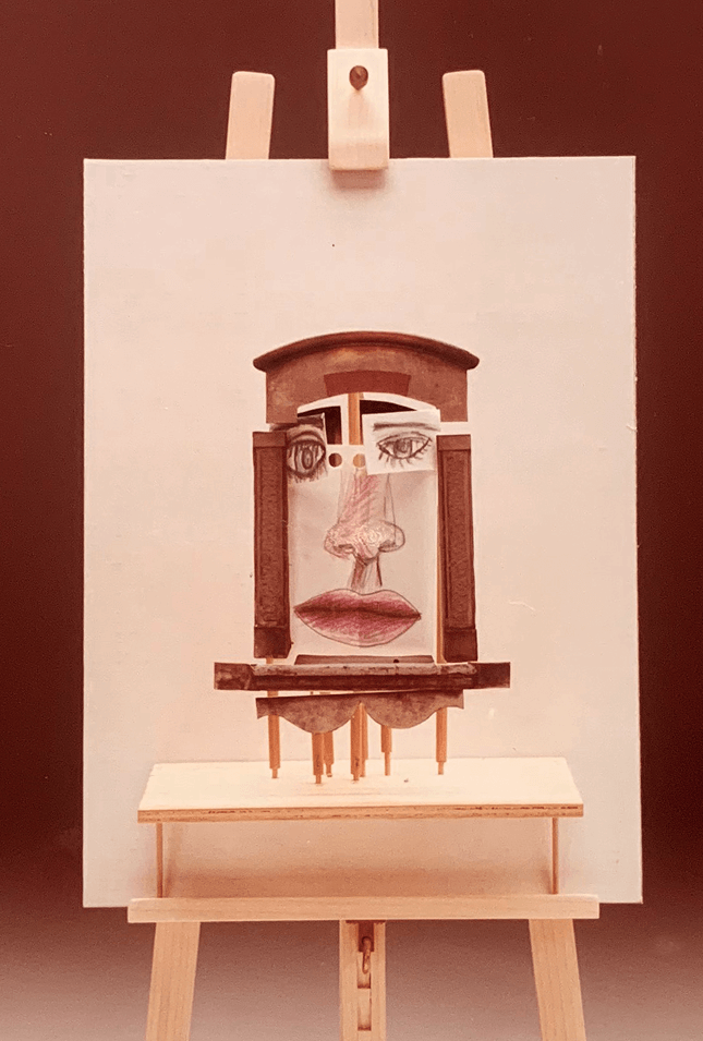 Porte e finestre di Padova. Fu occasione di esplorazione più intima. C’era sì la foto di una finestra e di una porta balcone. Ma la finestra era viso, attraverso cui guardare ed essere guardati; la porta qualcosa di più erotico per entrare e penetrare. Un gioco sul cavalletto del pittore dove si esponeva la faccia-finestra, l’io interpersonale. La stessa finestra-faccia sulla sedia sul cavalletto: l’io monoposto. la porta pelosa-vulvapene balconato: un io biposto, una relazione, una duplicità. Intimo aperto, erotico, politico, un Bi-io, una porta finestra, un bivio: imporsi o sottoporsi.