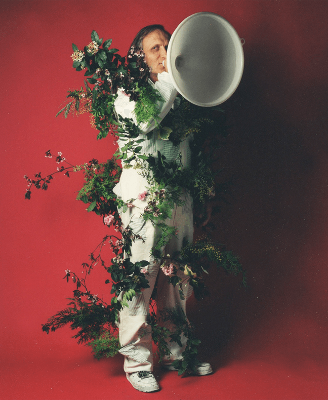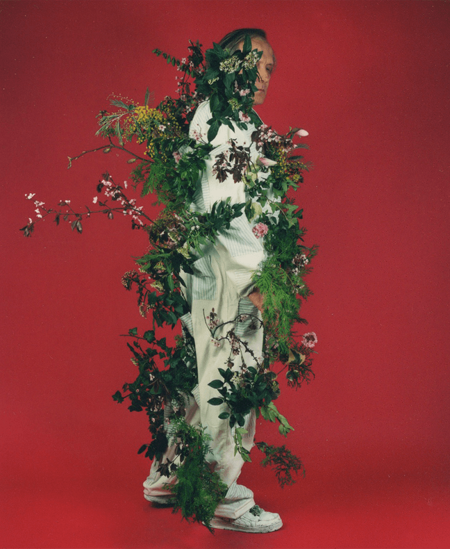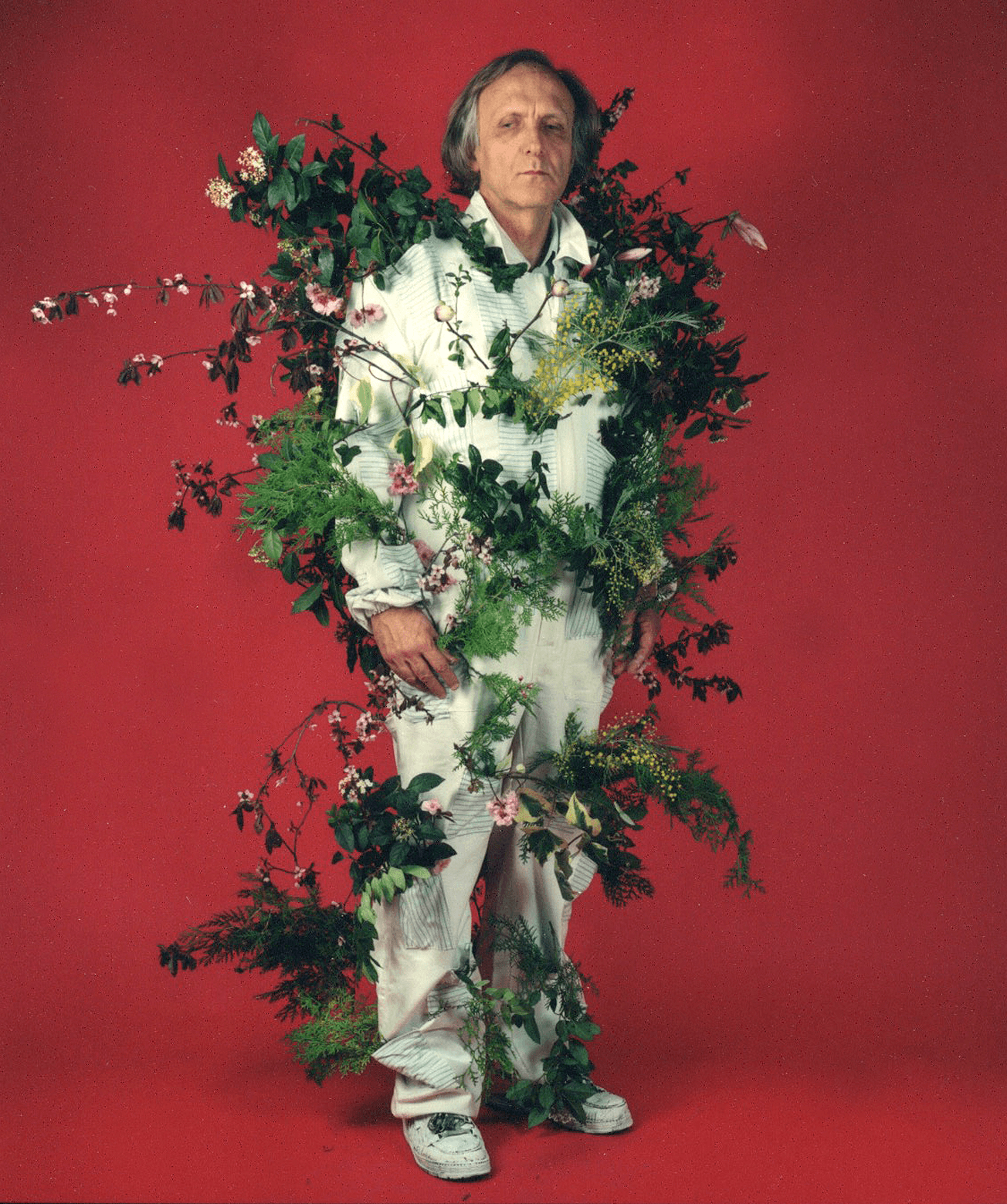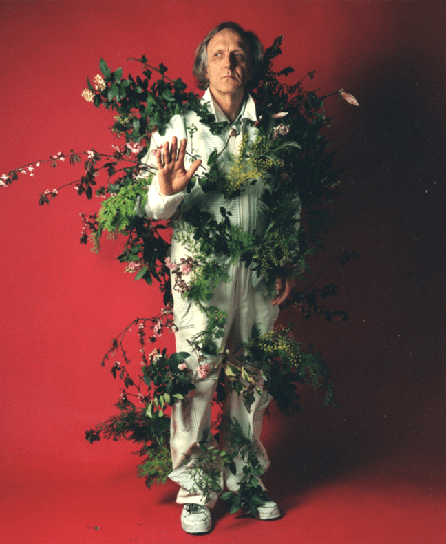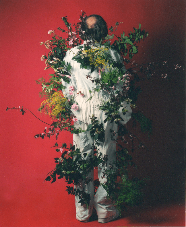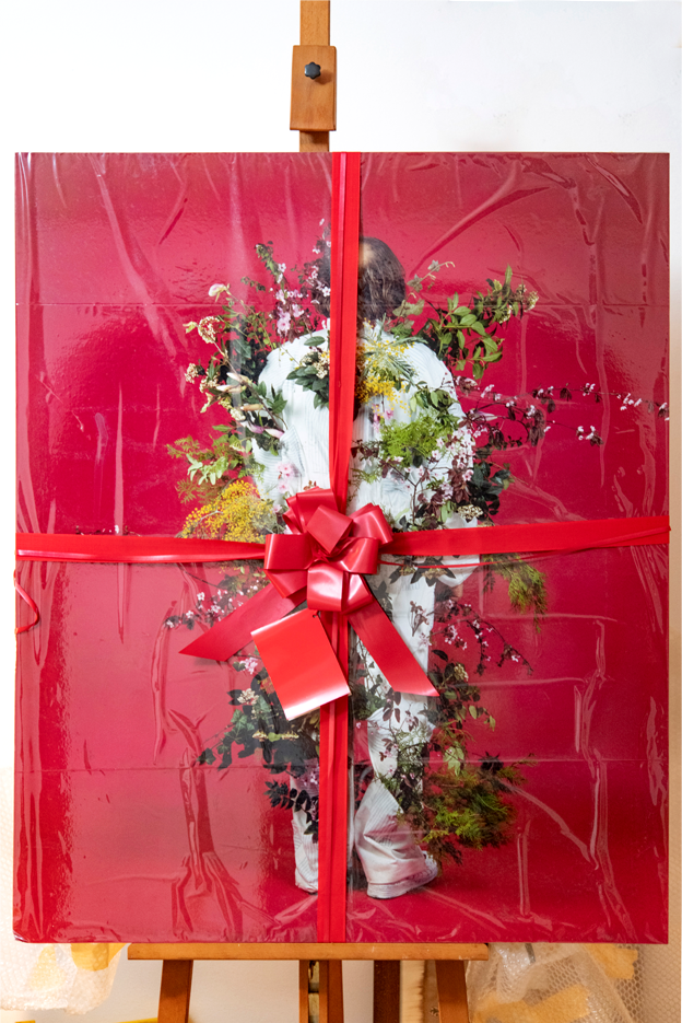 L’immagine di un uomo – albero fotografata, una gigantografia impacchettata in formato regalo, con l’inevitabile fiocco rosso.